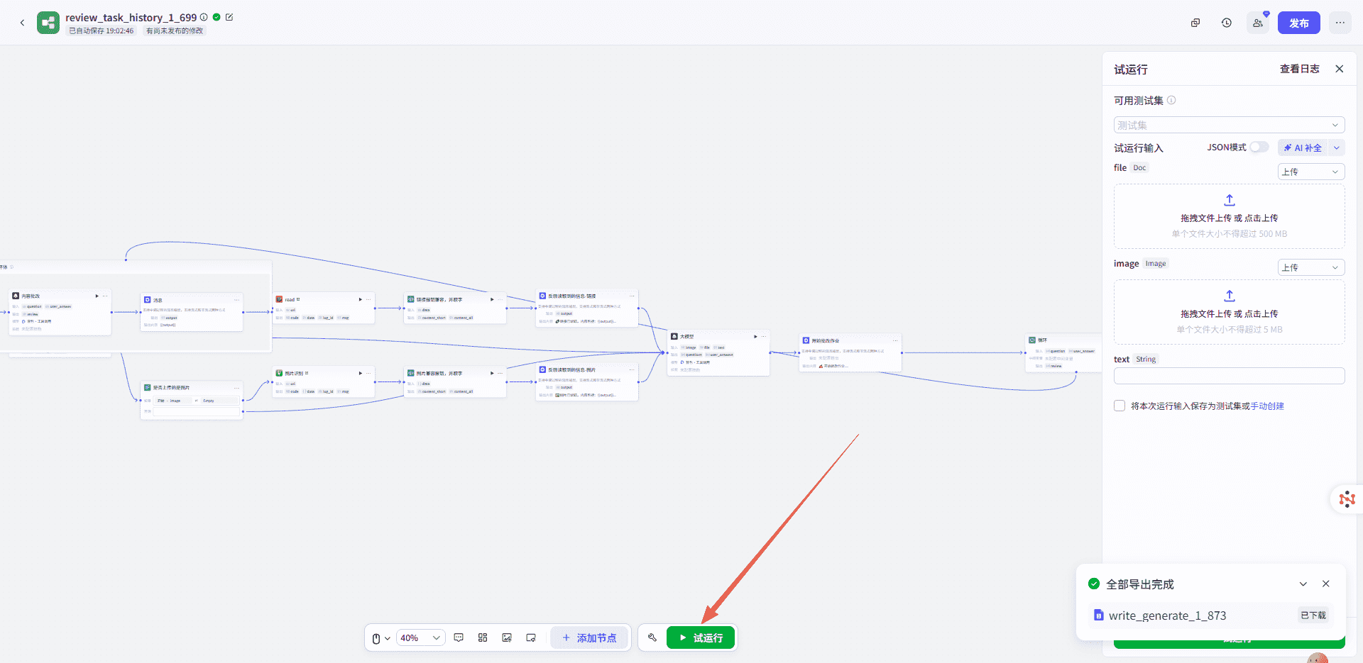 2. 收到用户的作业文件后,调用review_task_history_1_699工作流进行批改。